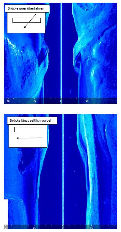 Die Wassertiefe beträgt 16,5m. Somit ist der Teil des Brückenpfeilers, welcher sich unter Wasser befindet bis zum Grund ebenfalls 16,5m lang.