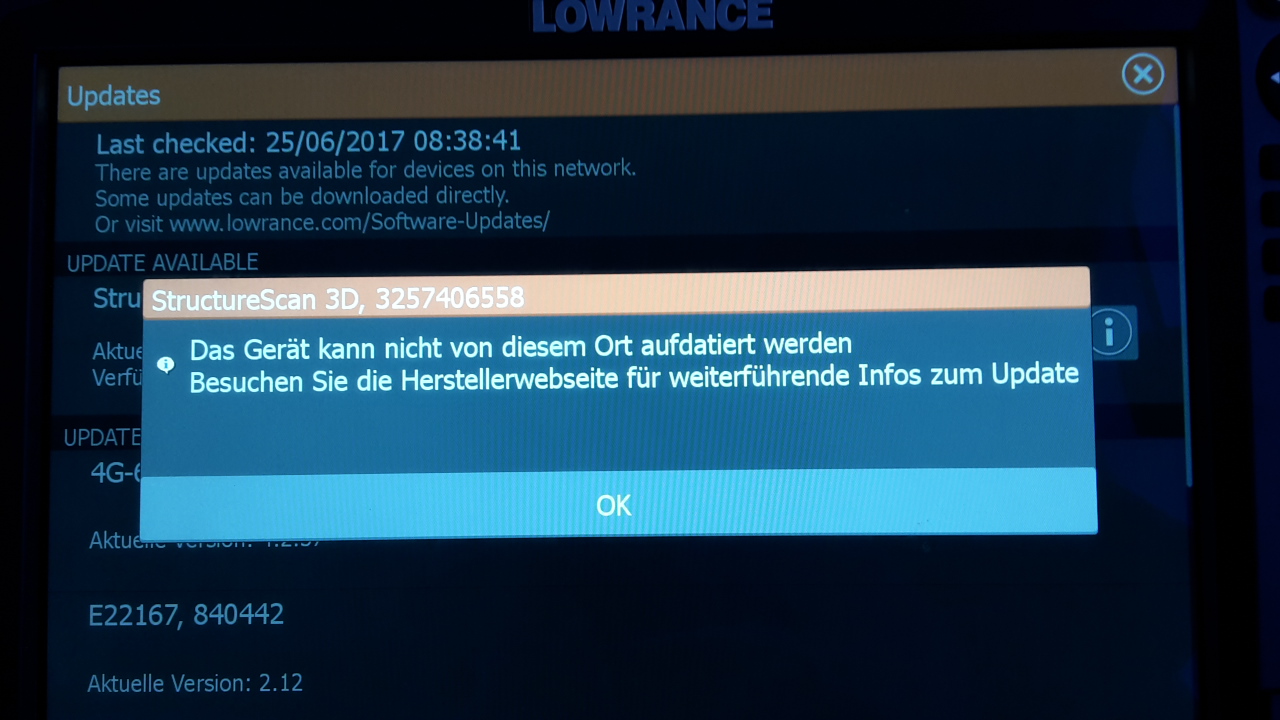 Es lag an Lowrance, denn auch der Support wusste nicht weiter und reagierte bisher auch nicht auf konkretere Rückfragen.