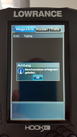 Diese wird eingelesen und danach werden die Wegpunkte im Hook4 auch angezeigt: