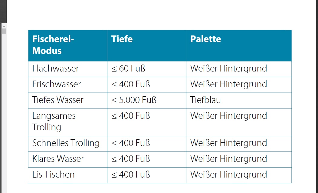 Mögliche Einstellungen, Fischerei Modus (Tiefe/Farbe) bei Lowrance/SimradGrob gesagt endet Flachwasser bei einer Tiefe von ca. 18 Meter wobei die
