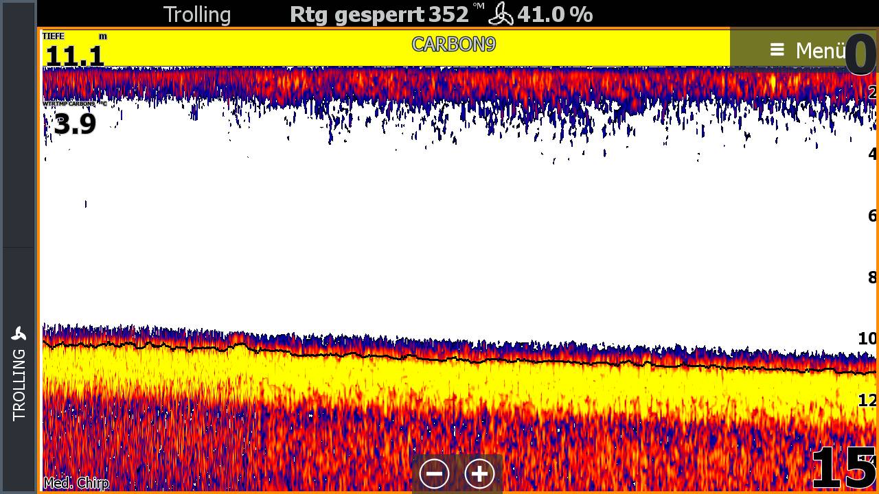 Da meine Geräte mit Netzwerk verbunden sind, kam ich vor kurzen auf die Idee den Airmar an das HDS7 Gen3 anzuschließen & das Bild auf dem Carbon9 anzeigen zu lassen. Was soll ich sagen, das Bild (Boden) sieht wie auf anderen Geräten aus.