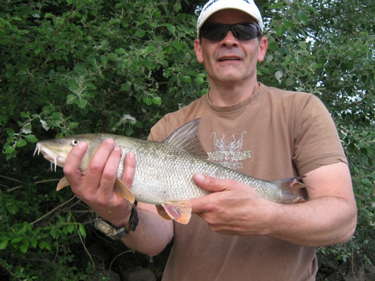 Der hat über 40 cm dachte ich mir, so wie der zieht, dabei konnte ich feststellen, das sich die Bremse meiner Rolle sehr fein dosieren lies. Nach ein paar Minuten Drill gingen die Vermutungen von Barsch, über Hecht, und dann Rapfen, haarscharf am gefangenen Fisch vorbei. Es Zeigte sich eine Barbe.