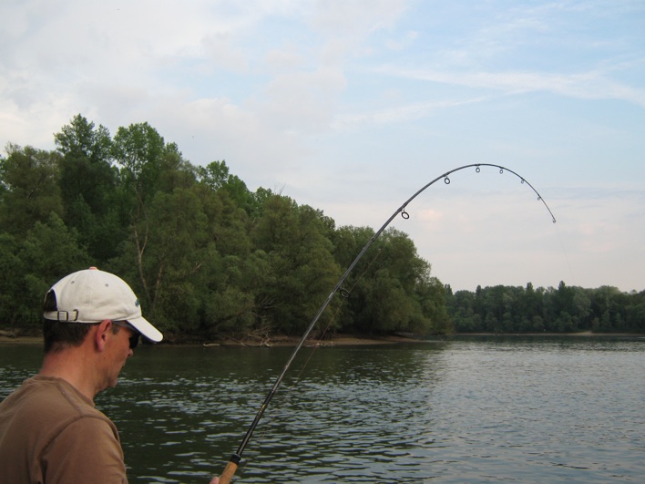 Nach einigen erfolglosen Würfen mit dem Rig um Barsche zu ärgern, die aber nicht kamen, krümmte sich plötzlich meine Rute, und das nicht schlecht.