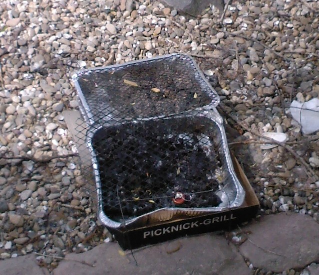 Unzählige Einweggrills, Flaschen, Tüten, Dreck überall.