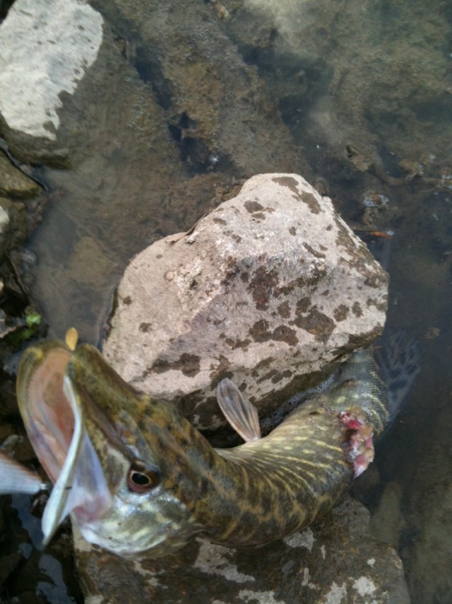 Hecht gefangen, als ich ihn abhacken wollte staunte ich nicht schlecht. Er hatte am rücken eine Wunde, die bis zur Mittelgräte reichte.