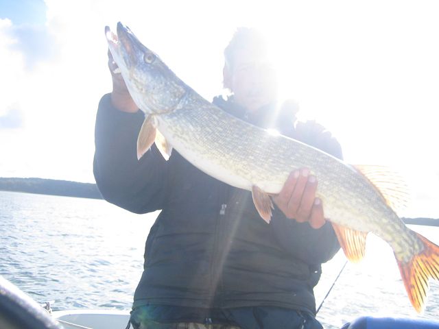 heute war ich nach 5 Tagen Sturm, mal privat los, oben an der Kuhle, ihr wisst schon :wink:. einen 90iger Hecht und nen 70iger, nebenbei noch einige Barsche, Bildqulität ist schlecht, ich war allein und wollte den Hecht nicht unnötig lange seinen Element entziehen
