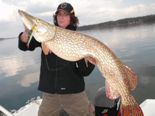 Naja Pfingsten bin ich eh schon ausgebucht, aber wenn mal wieder sowas ansteht, wir sind gerade meit der Ferienanlage Heidenholz ein Kommplettangebot zu ertsellen, was 5 tage Angeln und 6 Übernachtungen beinhaltet. Anbei mal ein Bild von einen der hechte die letzte Woche zum Kurzbesuch gekommen sind. :wink: