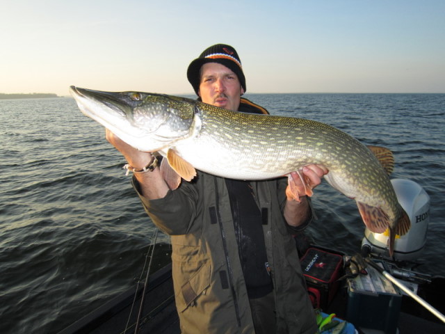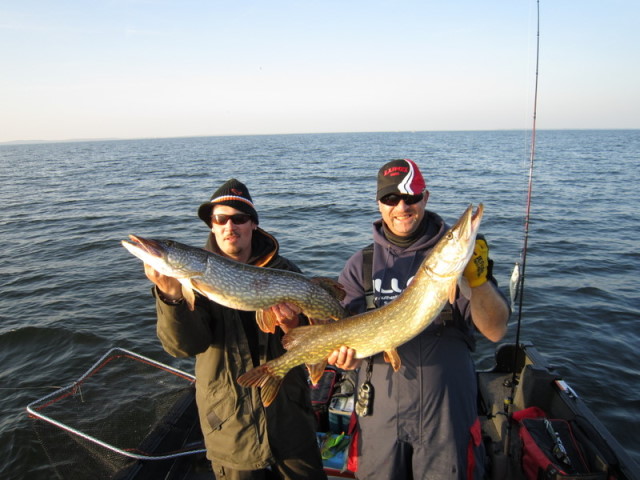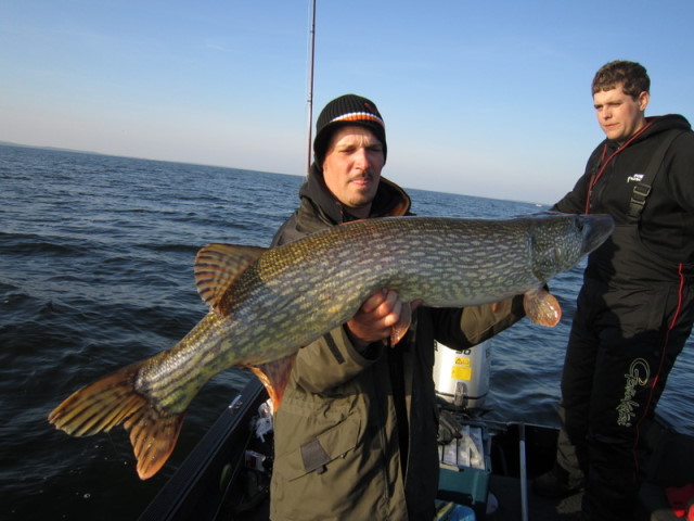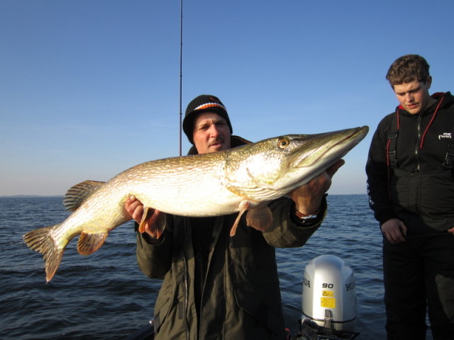 Hechte fangen, wovon 4 Meterfische dabei waren. 101 und 107cm vom Bootskollegen.