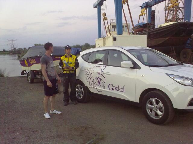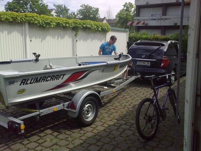 Kurz vor der Abfahrt noch der Check, hängt der Trailer mit dem Boot auch sicher, Abreißleine (Bremsseil) auch dran, Jawohl.