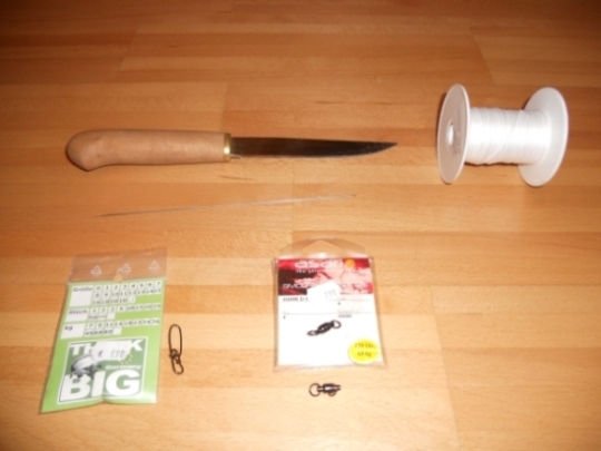 Gleich vorab, es handelt sich hierbei um ein Vorfach zum Wallerspinnen. Allerdings, sofern es solche eine Schnur auch in dünneren Durchmessern gibt, kann man sich so auch Vorfächer zum normalen Spinnfischen basteln.
