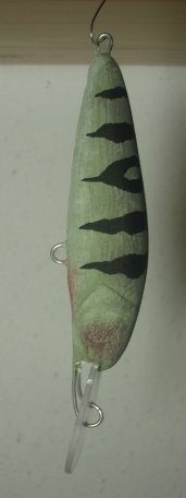 Rohling vorm Epoxieren u. ohne Äuglein, der hat auch schon paar Fische aufm Buckel