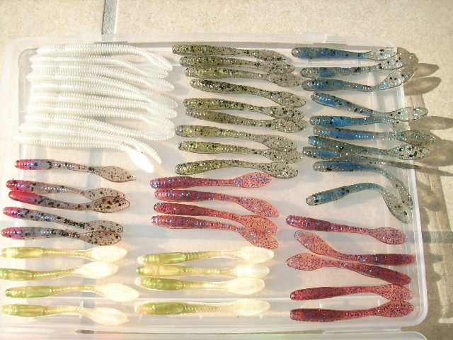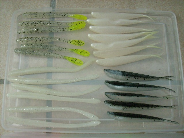 hab etwas ausgemistet da ich viel zu viel Gummizeugs habe......(einen Teil dieser Köder behalte ich für mich) und wegen Platzmangel ...Hamsterkauf muß das Doppelte gehen.