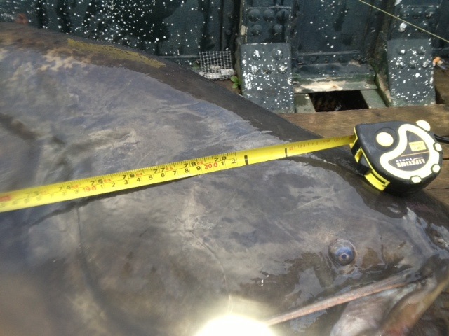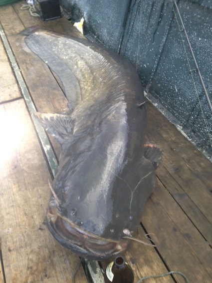 Ein Wels als Beifang beim Zanderfischen von 2,25 m (gemessen)und ca 60-70 kg (geschäzt).