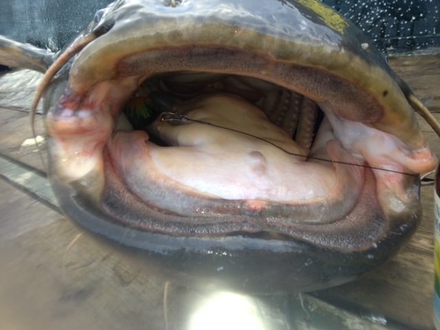 Ein Wels als Beifang beim Zanderfischen von 2,25 m (gemessen)und ca 60-70 kg (geschäzt).