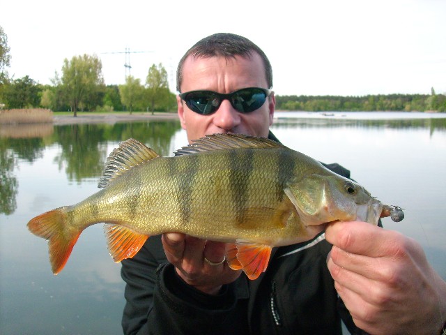 ...der,der eigentlich gedrillt wurde ein Ü40 ist vor meinen Augen ausgestiegen....wurde aber von ca. 8 Barschen in dieser Größe begleitet von denen einer sofort den sinkenden FSI inhalierte (Futterneid).