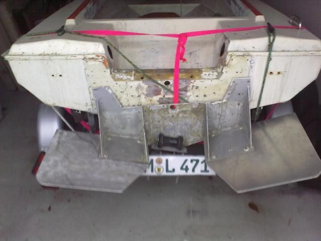 hatte der Vorbesitzer aus dem Motorspiegel einen Sieb gemacht da er die Trimmplatte mit ca. 50 Schrauben befestigt hatte !