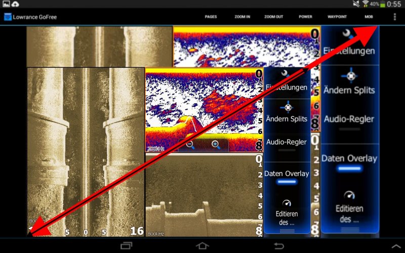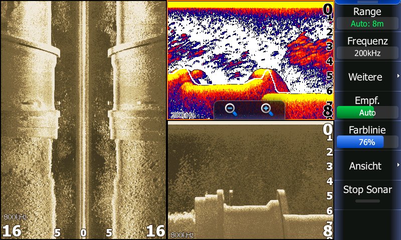 Das kleinere Bild im Vordergrund mit der Schwarzen Diagonale ist der Bildschirm des HDS,