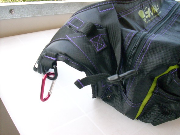 Dann noch eine kleine Tasche rechts für eine Trinkflasche und auf den Bild 2 zu sehen eine tasche für die Zange und Karabiener für den Bogagripp.es gubt auch noch eine Polterung für den Gurt die auch mit einem Klettverschluß versehen ist.