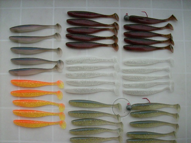 10 St.Keitech 5" Easy Shiner Sexy Shad einer mit Jigkopf (nicht gefischt)je 5er Pack 6,50 € ein 5er Pack verkauft