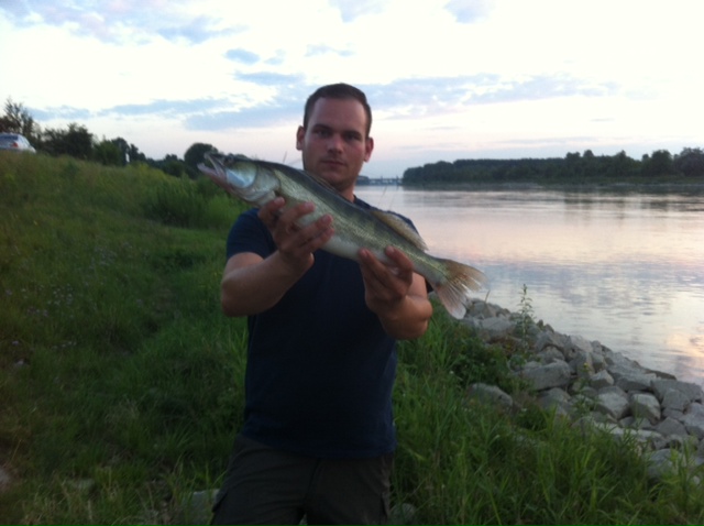 Nach etwa zwei Minuten nachdem ich mein langersehntes Feierabendbier geöffnet hatte, gabs nen schlag und die Schnur lief von der Steinpackung weg. Nach kurzem, aber verhältnismäßig hartem Drill konnte ich dann einen schönen Zander landen.