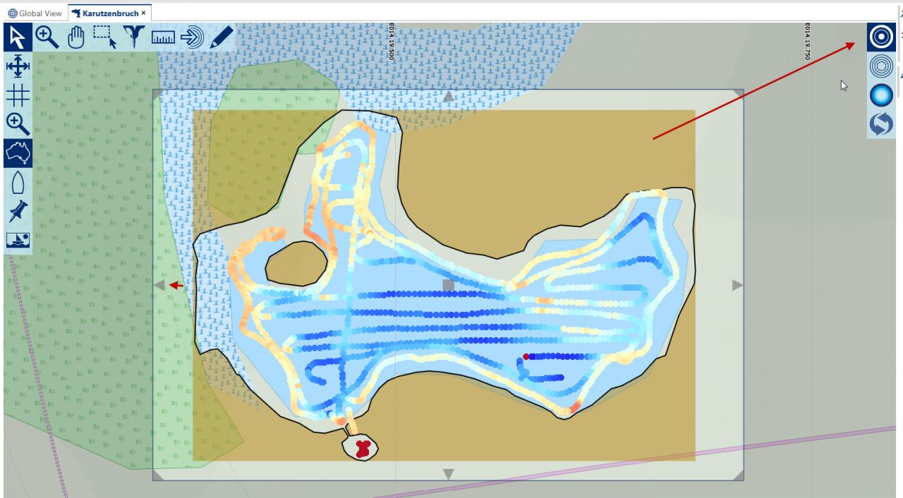 - Eine andere Alternative wäre Folgende. Im Projektmodus auf die Trackansicht und den Track im Viewer anzeigen, Punkte anzeigen lassen. Schauen ob die Punkte wirklich 2 m erreichen und überschreiten. Einige der fraglichen Punkte ca. 10 cm oder etwas mehr (probieren) runter ziehen, Karte neu berechnen. Dieser Fehler wäre dann sehr kleinflächig und gut vertretbar.
