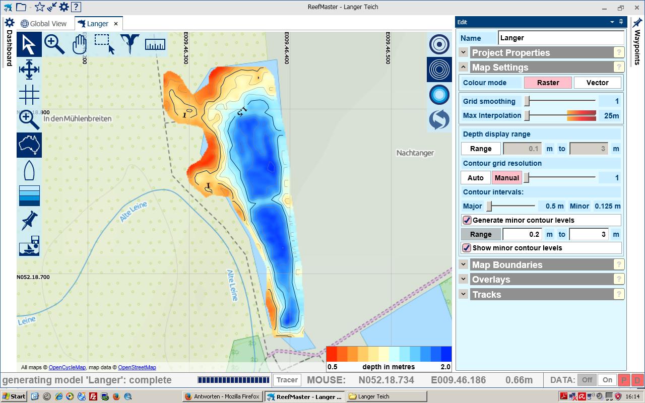 und ab auf den ersten teich drauf. neben bei der flachste und schon endschlamte Teich. um zu schauen was das alles gebracht hat und was wir für Tiefen haben. wie gesagt daten gesammelt, an den PC und nach anleitung gearbeitet.( wie hier beschrieben)