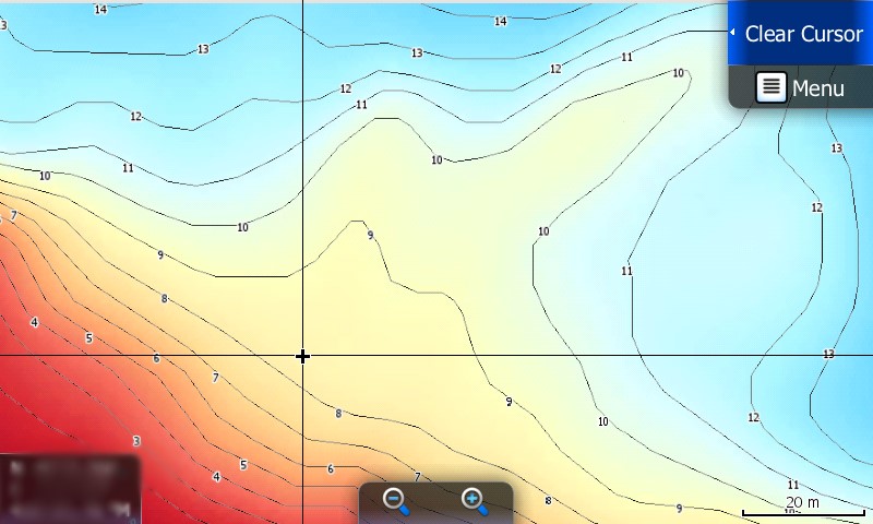 eines kleinen Sees, dargestellt auf einem Lowrance HDS7 Touch.