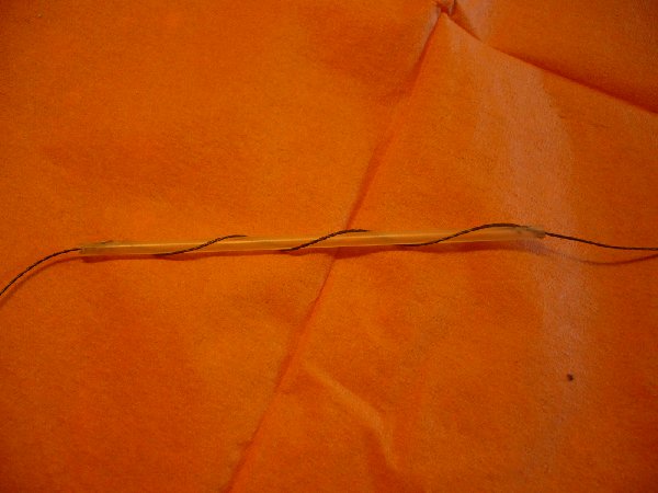 Die Geflochtene Schnurr wird nun von innen des Rohr durch das loch geführt und 3 x um das Rohr gewickelt.