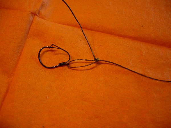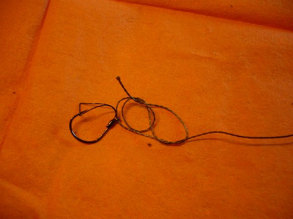 Nun folgt das anbinden des Hakens in diesem Fall ein Krauthaken da ich mit Wurm  fischen will.