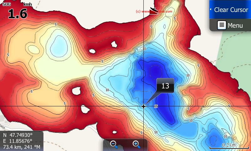 Was man auf dem Screenshot sieht, ist ganz einfach eine Navionics-Basiskarte in einer relativ starken Zoomstufe von einem Bereich, wo halt nichts ist.