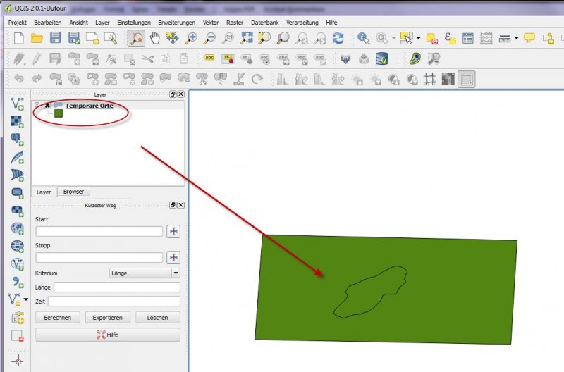 Maustaste auf "Temporäre Orte"). Hier heißt sie "my data.shp"
