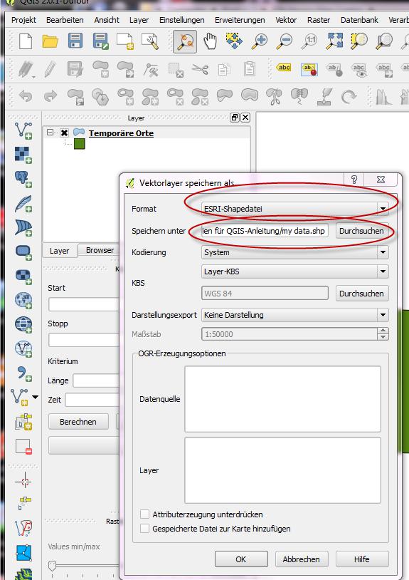 Speichere die Daten als Shape-Datei mit beliebigem Namen (rechte