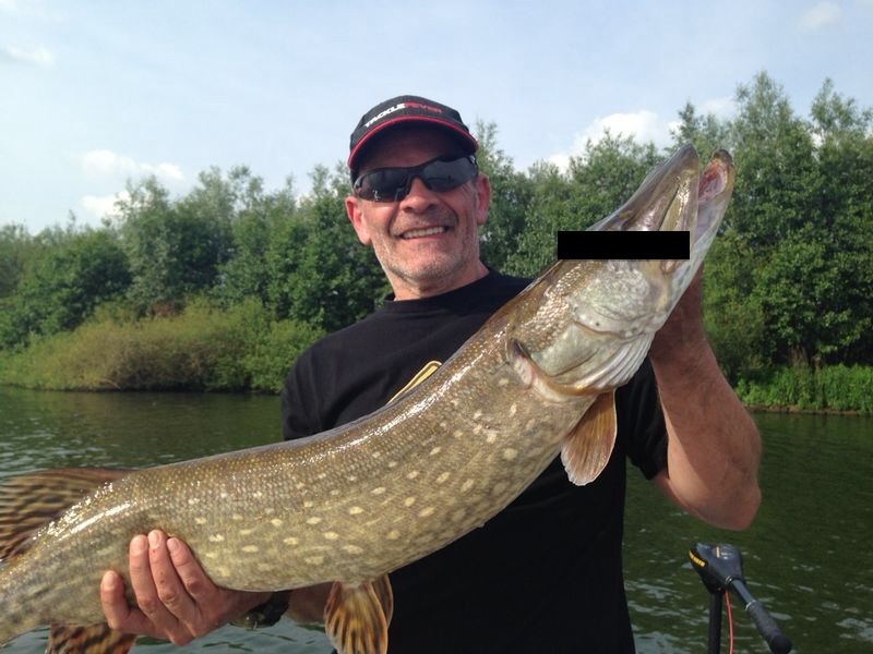 Der erste Tag und noch keine halbe Stunde gefischt da kam mein PB Barsch mit 50+, danach gabs nur mal ab und zu einen Zander oder Barsch oder Hechtlein, der letzte Fisch des Tages dann mein PB Hecht mit 101 cm, ein Hammerteil (er wollte das Recht am Bild nicht raurücken, deshalb musste ich ihn verfälschen), der machte auch den Frust und Ärger wieder wett, als ich mich mit meiner Antriebsaxe in den Sand gewühlt hatte und erst nach einer Stunde und viel Mühe wieder frei kam.