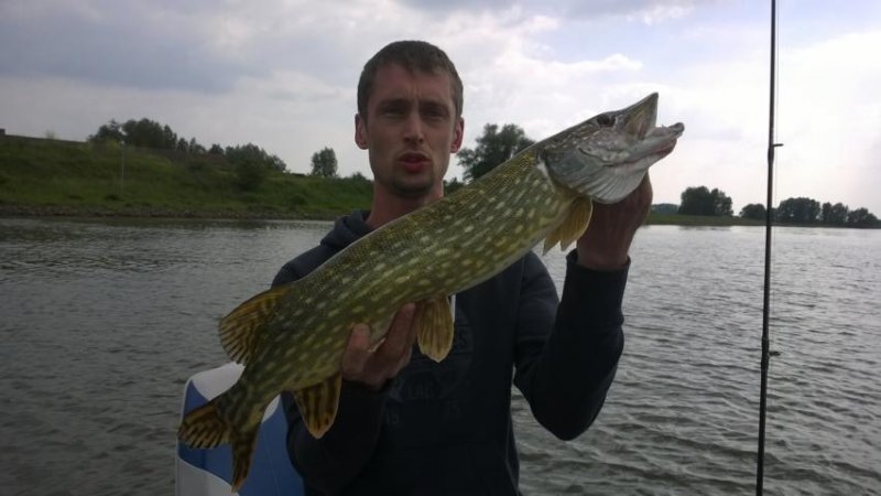 Der erste Tag und noch keine halbe Stunde gefischt da kam mein PB Barsch mit 50+, danach gabs nur mal ab und zu einen Zander oder Barsch oder Hechtlein, der letzte Fisch des Tages dann mein PB Hecht mit 101 cm, ein Hammerteil (er wollte das Recht am Bild nicht raurücken, deshalb musste ich ihn verfälschen), der machte auch den Frust und Ärger wieder wett, als ich mich mit meiner Antriebsaxe in den Sand gewühlt hatte und erst nach einer Stunde und viel Mühe wieder frei kam.