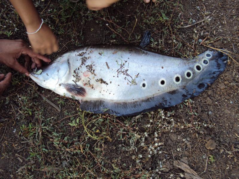 Das zweite Bild zeigt einen clown featherback oder spotted featherback, den ich im Hinterland (Reisland) gefangen habe.