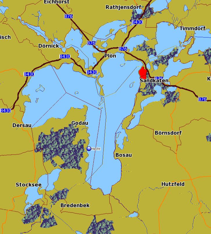 Was ich meine wenn ich auf dem Stocksee bin, zeigt er das auch an,mit blauen Wasser.Und auf dem Plöner nicht.Da ist nur eine grüne Fläche.