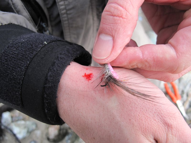 Haken in der Lippe, aber Gott Sei Dank nicht bis über den Widerhaken.