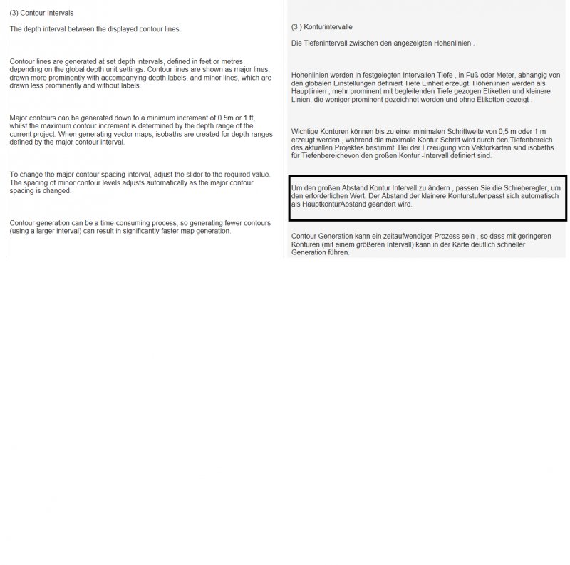 Wenn man seine Karte fertig in der Projektansicht macht, dann ist die Tiefenabstufung primär auf 3 m Schritte eingestellt. Leider muss ich sagen, denn ich würde das anders machen wollen. Dann einfach die "Contour Intervalls" runterregeln und neu "Regenerate".