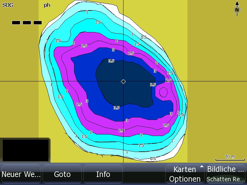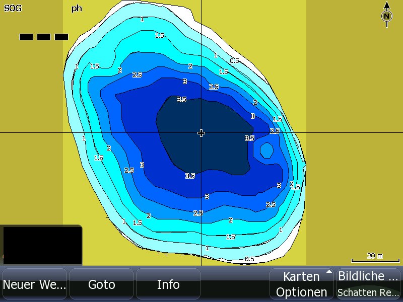 Hier sieht man die Ursprungskarte mit den korrekten Tiefenwerten an jeder Tiefenlinie.
