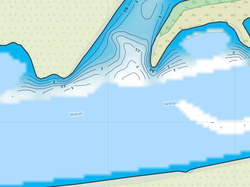 Die angehängten Bilder verdeutlichen das. Obwohl in RM vorhanden werden Ufer- und Tiefenlinien werden nur als Punkte dargestellt.