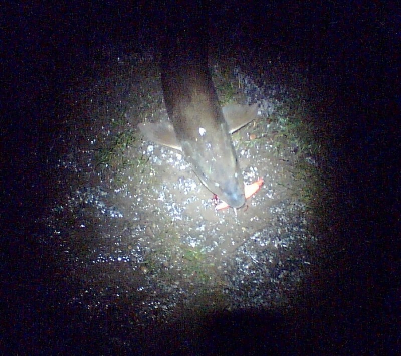 Den 4,1" Gunki Grubby Shad hat die Eine voll eingesaugt, so dass nur noch der Bleikopf raus schaut.  :schock: