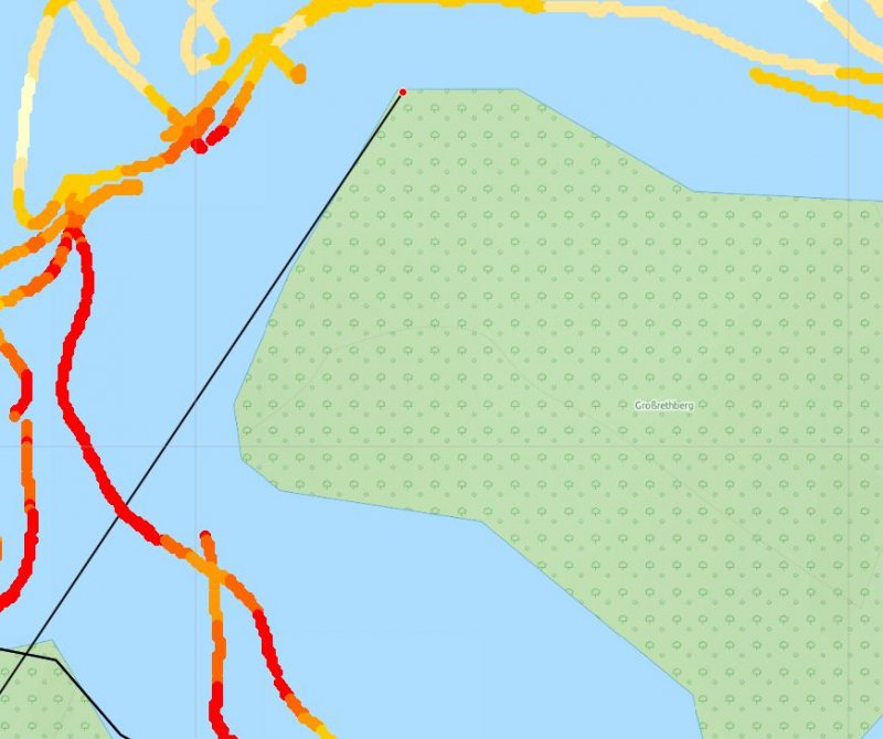 Man kann den Punkt vor Afrika zwar lösche, der Strich bleibt aber.