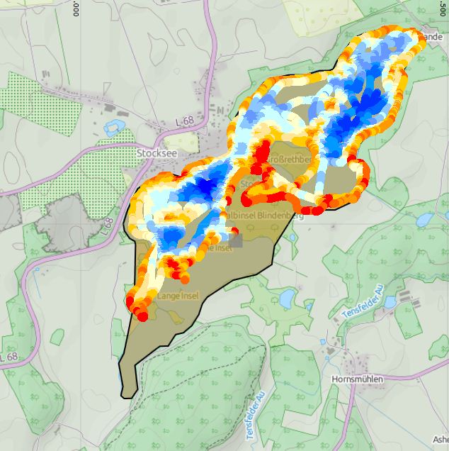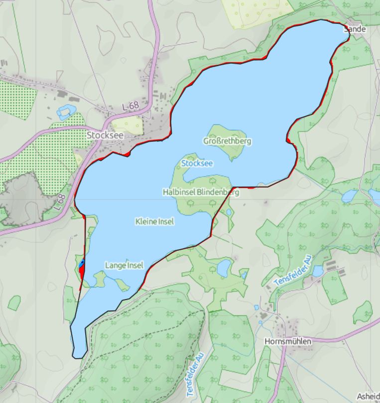 Daher wird innen nichts angezeigt, weil du damit deinen See zur Insel gemacht hast,