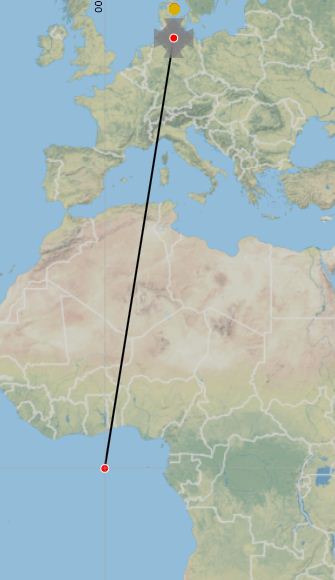 Man kann den Punkt vor Afrika zwar lösche, der Strich bleibt aber.