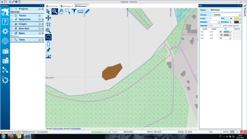 Ich habe in meinem Gewässer zwei Inseln eingezeichnet. Eine ist eine echte Insel, die soll Braun dargestellt werden. Die andere ist ein Laichschutzgebiet, dieses wird durch eine Bojenkette vom anderen Gewässer abgetrennt. Da es sich hierbei um eine Wasserfläche handelt soll diese Fläche blau sein.