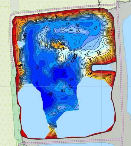 Ich nutze für den flachen Randbreich bis 1m Tiefe sogar absichtlich eine konstrastierende Farbe, damit ich 'schraubenschonend' bei diesen Bereichen vorbei oder drüber fahre. So, wie deine Karte jetzt zufällig aussieht, mache ich meine Karten absichtlich, nämlich mit der Farbe 193 für den Bereich 0 - 1m