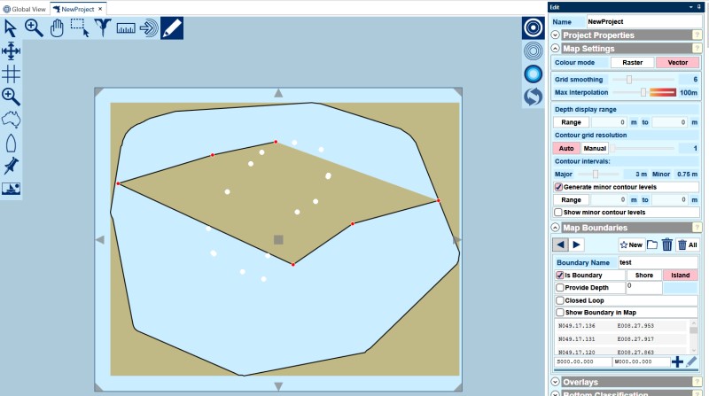 Und da man "Show Boundary in Map" nicht aktiviert hat, wird die Fläche auch nicht als Insel dargestellt sondern einfach als Grenze,
