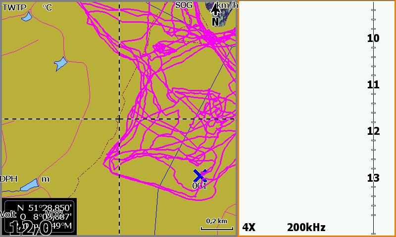 Wenn ich die Karte mit dem IMC erstellen lasse ohne einen Namen zu vergeben, wird die Karte auf dem Echolot korrekt angezeigt.