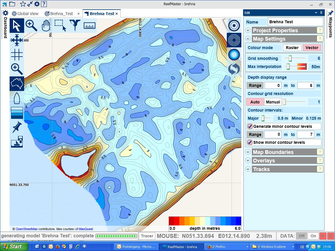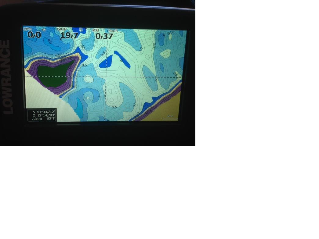 Zwischenzeitlich habe ich in der Map auch die Farben für die Tiefenbereiche abgeändert, das brachte auch nichts, da werden auch nur 4-5 Farben dargestellt. (Test an einem Tieferen See)