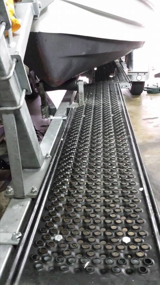 Den Trailer hab ich mit meiner " eigenen Steganlage" versehen....das boot mit gummistiegeln slippen ist ein Kinderspiel !